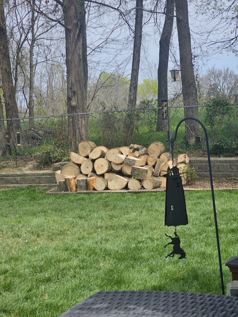 As you know we had a tree taken down and this is what we have left to do. They left us much more than what they had said, but hey! More wood for camping!