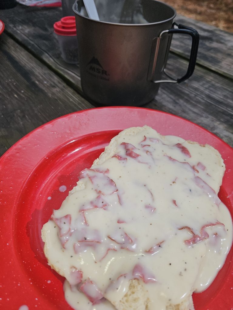Also I mentioned”Shit on a shingle” in the video… Normally you make it with toast, but these rolls travel better so we used them. It’s white gravy and jarred beef.. lots of sodium 😜